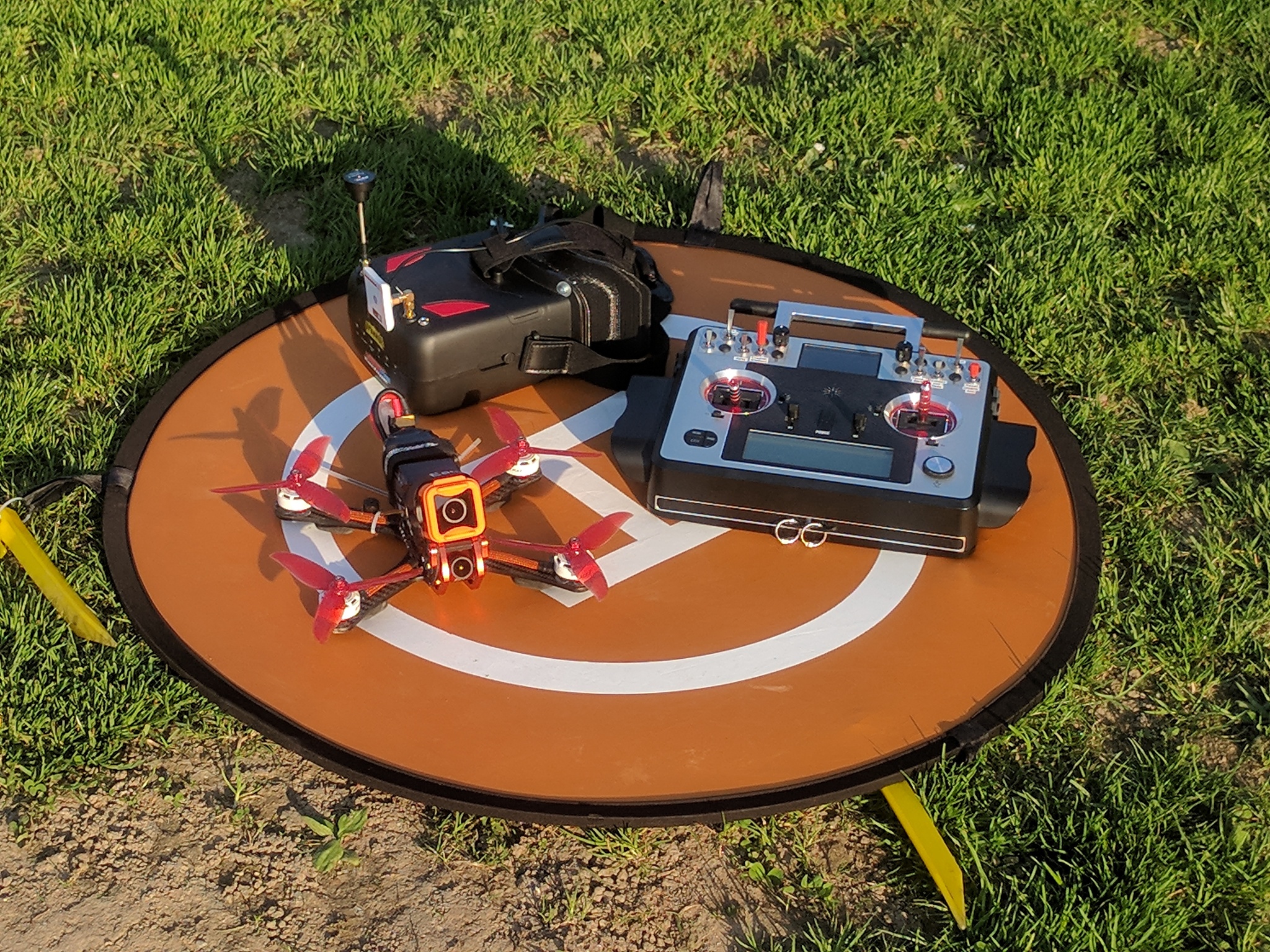 I have a prepacked backpack containing everything I need to fly. It contains my remote control, my batteries, my 3 race drones, my modded box goggles, my repair gear as well as my reserve propellers. I will show you a picture of my backpack in another blog post.