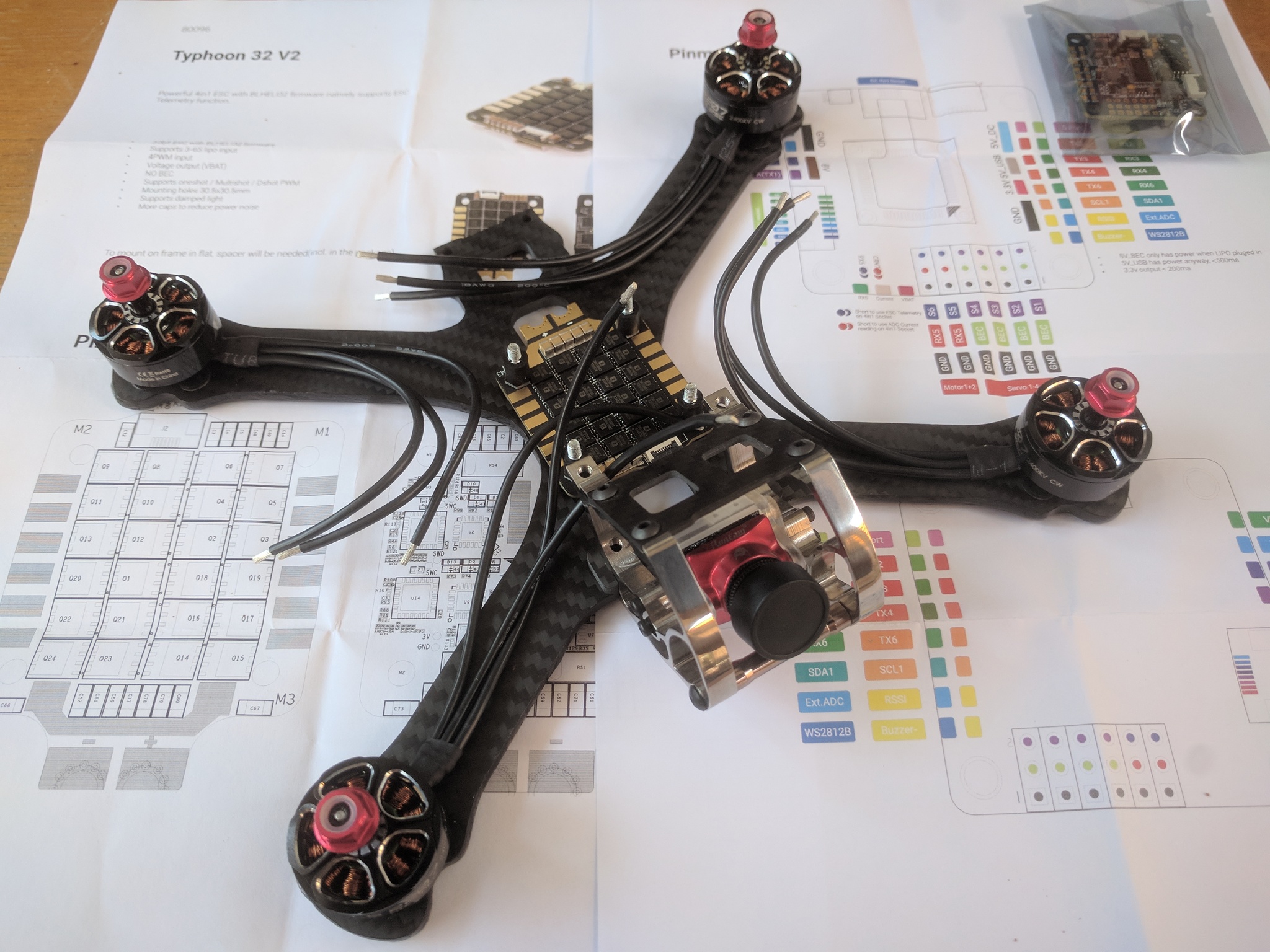 After mounting and connecting VTx, camera, flight control and receiver the drone looks like this: